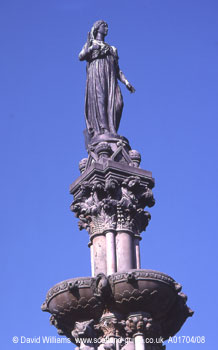 | This statue by John G. Mossman is of the Lady of the Lake (after Walter Scott`s poem). It stands atop the Stewart Memorial Fountain in Kelvingrove Park. |