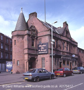 Brechin`s Bar stands on the south side of Govan Road in the district of Govan. A notice outside it states that it was established in 1798. The present building was erected in 1894 and boasts a tower in Scots Baronial style. Near the tower`s conical roof is a stone plaque which features a shield with the date 1894, two semi-clad men, a crown and a lion; its motto Sans peur means `Without fear`. High up on the southern side of the building is a stone carving of a cat, immortalising one prolific rat catcher who killed large numbers of rodents which had been brought to Govan on vessels carrying flax for the local weavers. The first floor contains the Cardell Hall, named after John Cardell who used the hall as a local headquarters for the Rechabites, a charitable organisation which espoused the virtues of temperance. A remarkable change of use for the building! This article is based